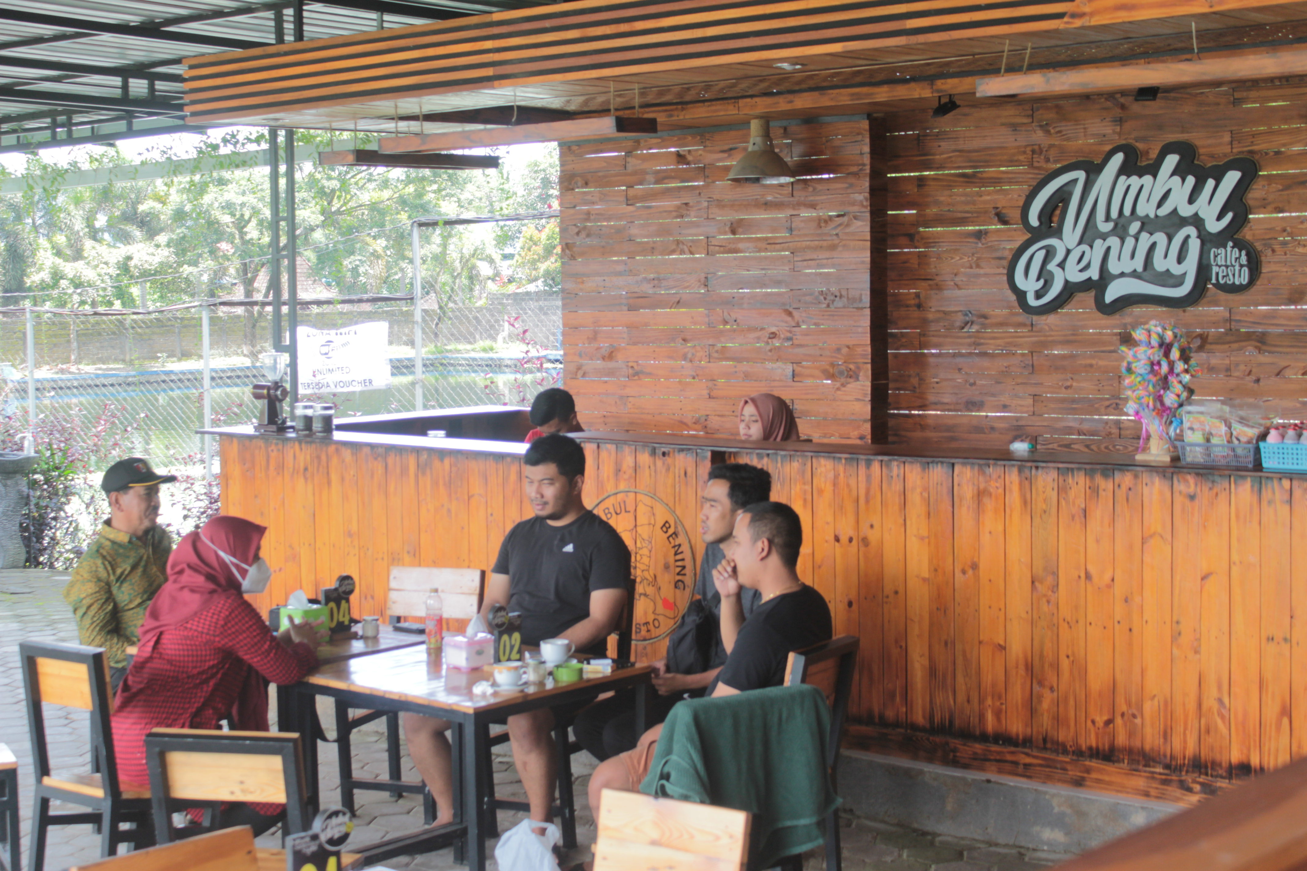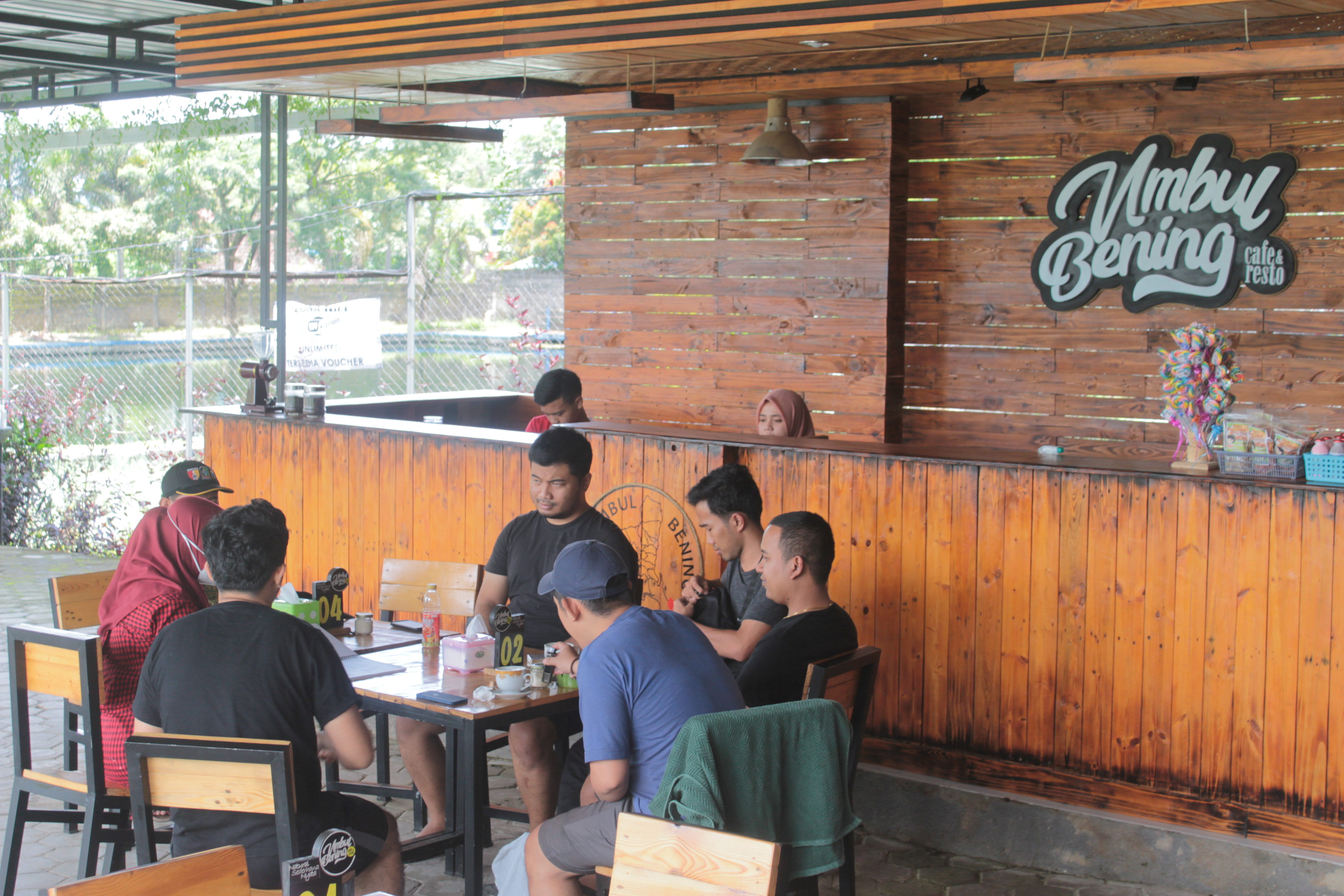 Umbul Bening Park memiliki fasilitas Cafe and Resto yang menyediakan berbagai macam makanan dan minuman. Cafe and Resto Umbul Bening terletak di dekat Danau Cinta. Pengunjung dapat menikmati sajian dengan menikmati keindahan Danau Cinta.